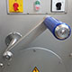 4. In der Bauweise ohne elektrische Steuerung dient eine Kurbel zum Hochdrehen des Mengarmes, damit der Mengwagen aus der Maschine gefahren werden kann.