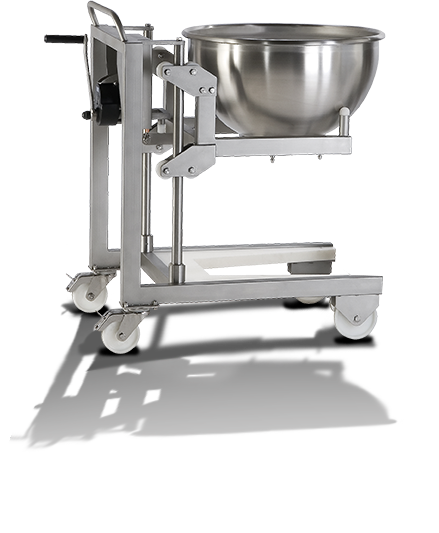 1. Durch den schwenkbaren Bottich ist die Entnahme der gemengten bzw. gemischten Ware problemlos und einfach möglich.